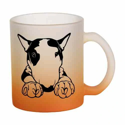 Hrnek skleněný MATNÝ 330 ml A+ barevný gradient *BULÍK s fleky* | Peštovka.cz
