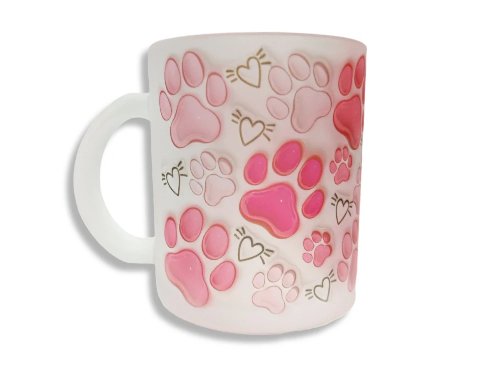 Hrnek skleněný MATNÝ 330 ml A+ *RŮŽOVÉ TLAPKY 3D*Vyrobíme pro vás do 2 týdnů250 Kč/ ks