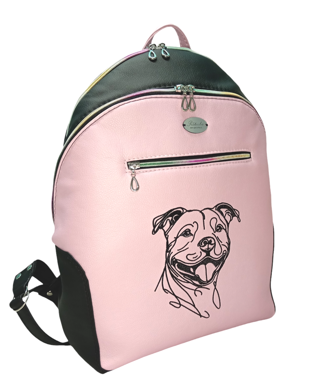Na předním díle je výšivka psa. Široké popruhy také jistě oceníte stejně jako poutko na přenášení.