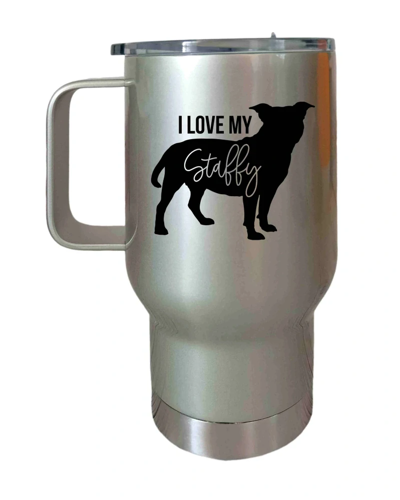 Peštovka Cestovní hrnek 450ml stříbrný *I LOVE MY STAFFY*Vyrobíme pro vás do 2 týdnů450 Kč/ ks