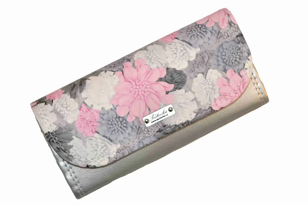 Peštovka Dámská elegantní peněženka *pivoňky se šedou*