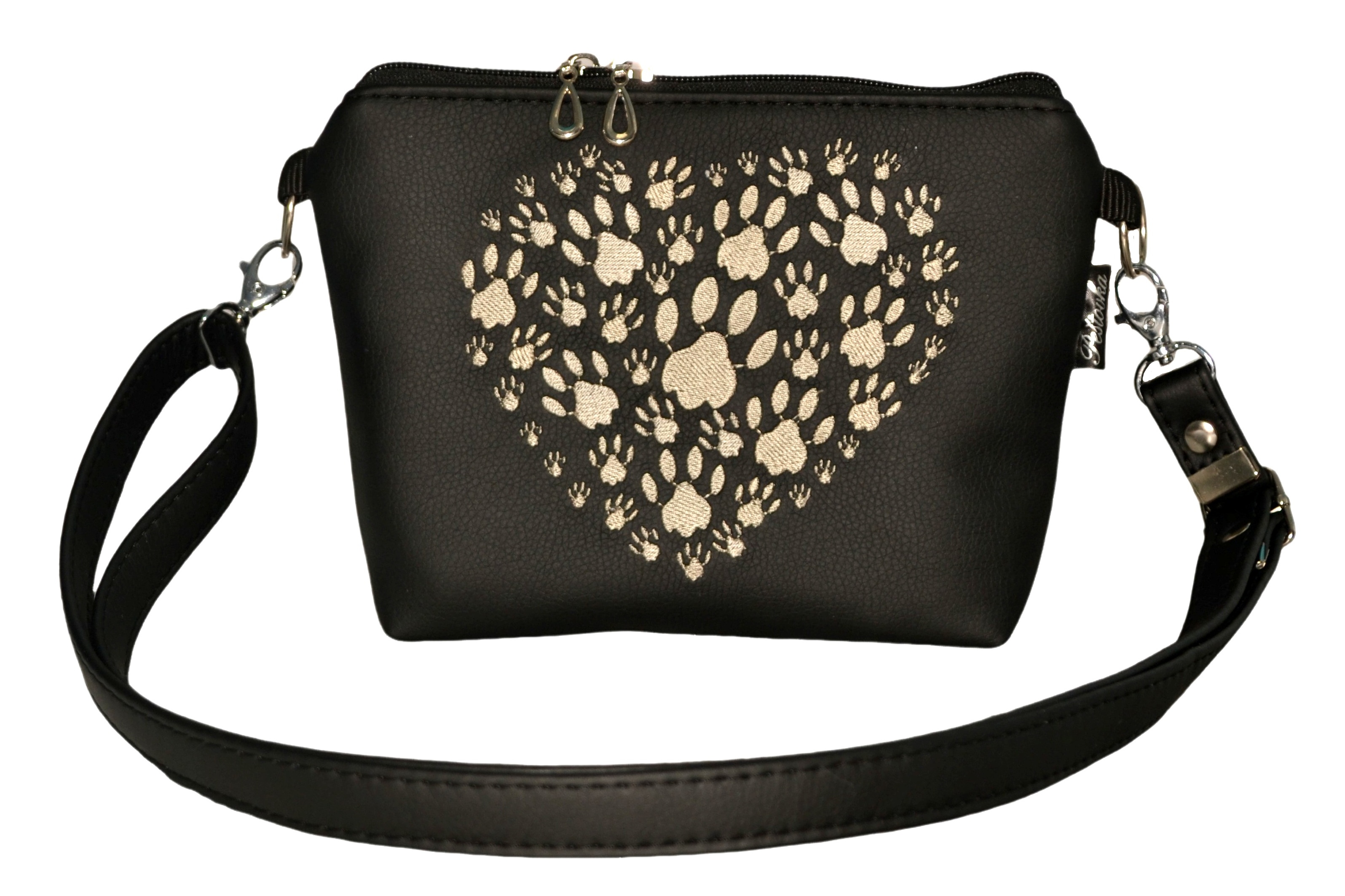 Kabelka Alenka má zavírání na zip a nastavitelný popruh až do 140 cm. Lze tedy nosit jak na rameni, tak přes křížem. Kabelka je zhotovena z koženky s výšivkou n přední straně. Bavlněná podšívka je vyztužena.