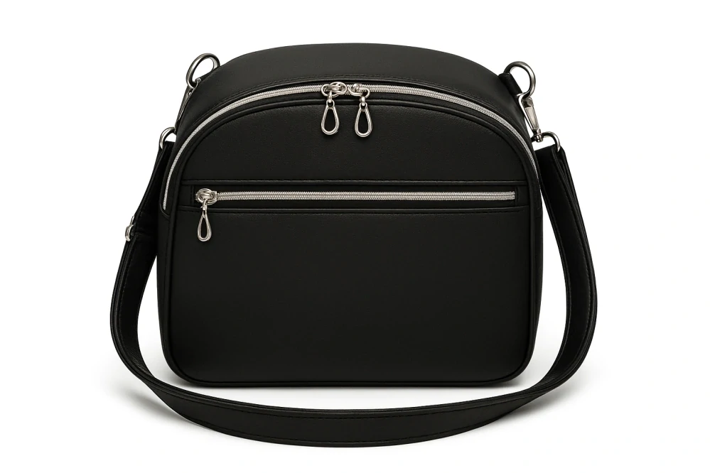 Elegantní černá koženka a praktické rozměry dělají z téhle kabelky ideálního parťáka pro každý den – do města, na procházku i na výstavu.