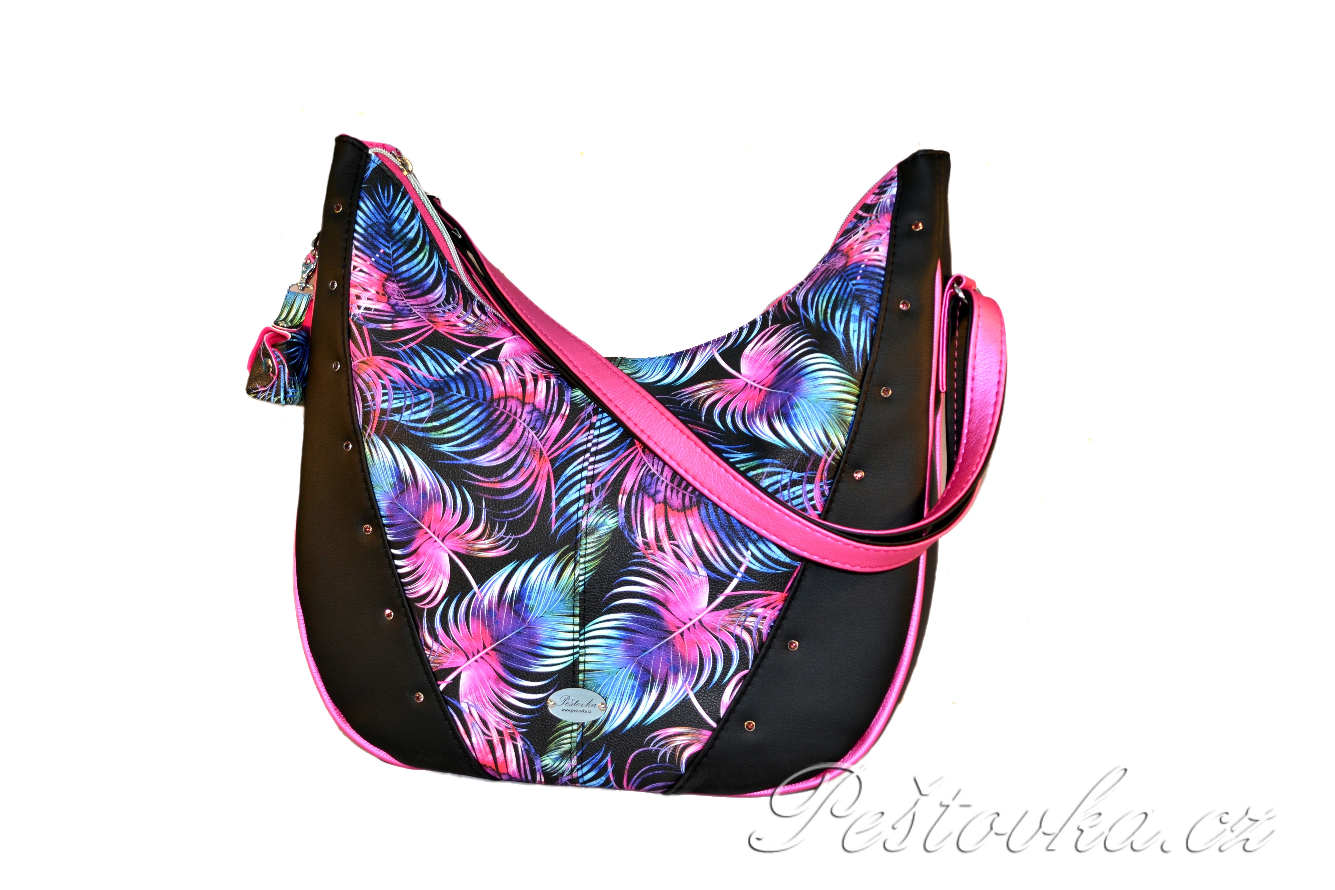 Peštovka - kabelka Karola *černo-růžová s listy*Vyrobíme pro vás do cca 2 měsíců1 990 Kč