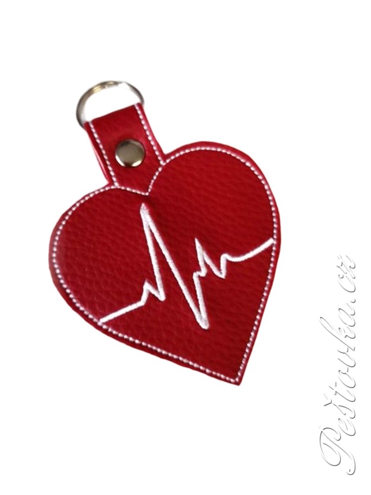 Peštovka - Klíčenka vyšívaná *červené srdce s EKG*Vyrobíme pro vás do 2 týdnů99 Kč
