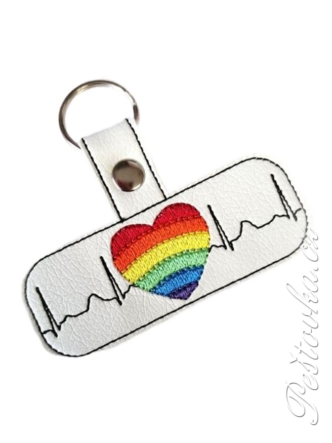 Peštovka - Klíčenka vyšívaná *duhové srdce s EKG*Vyrobíme pro vás do 2 týdnů99 Kč
