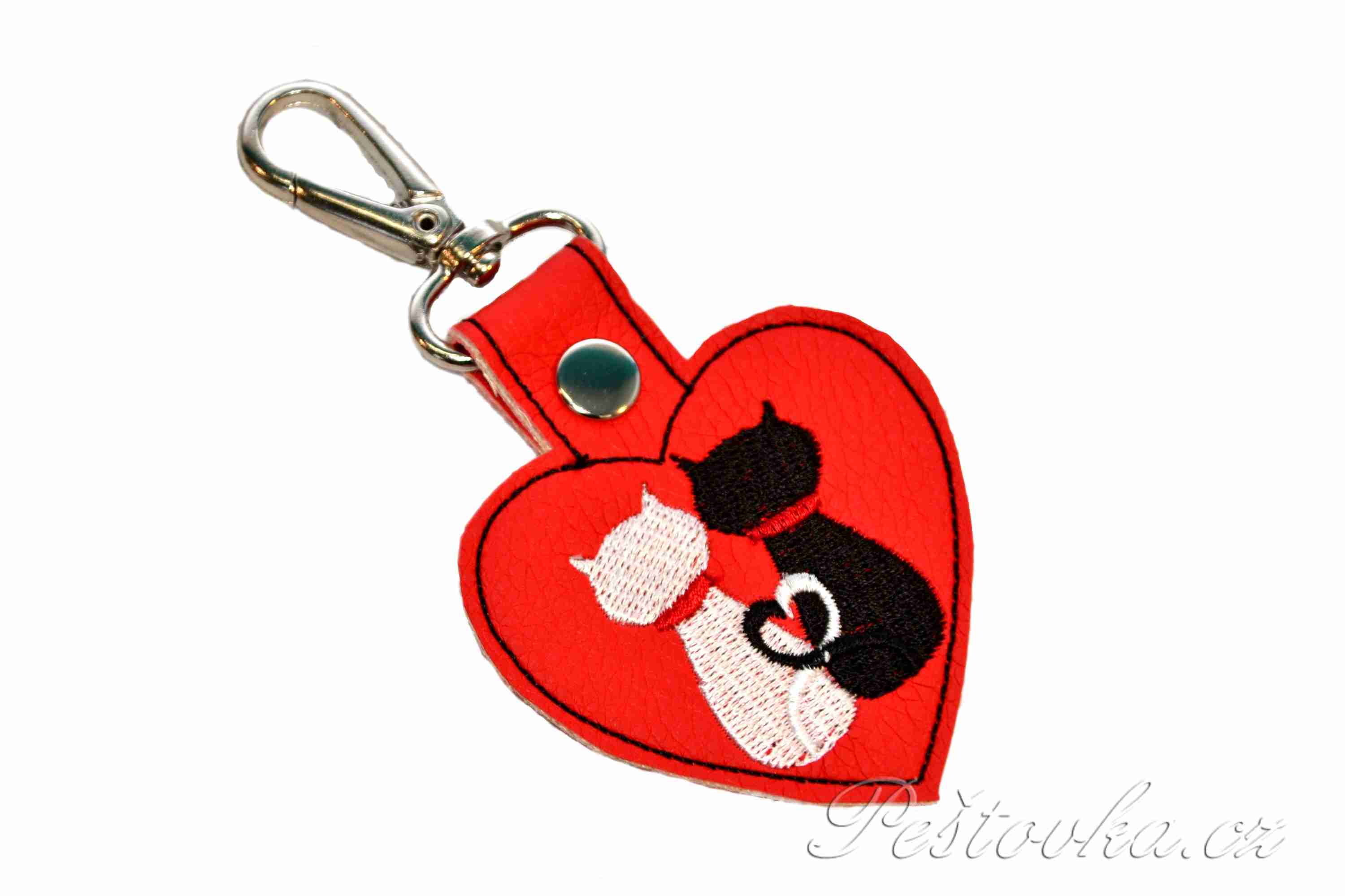 - Peštovka - Klíčenka vyšívaná *SRDCE PRO KOČKU*