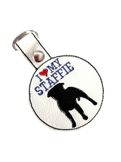 Peštovka - Klíčenka vyšívaná *I love my staffie*Vyrobíme pro vás do 2 týdnů99 Kč