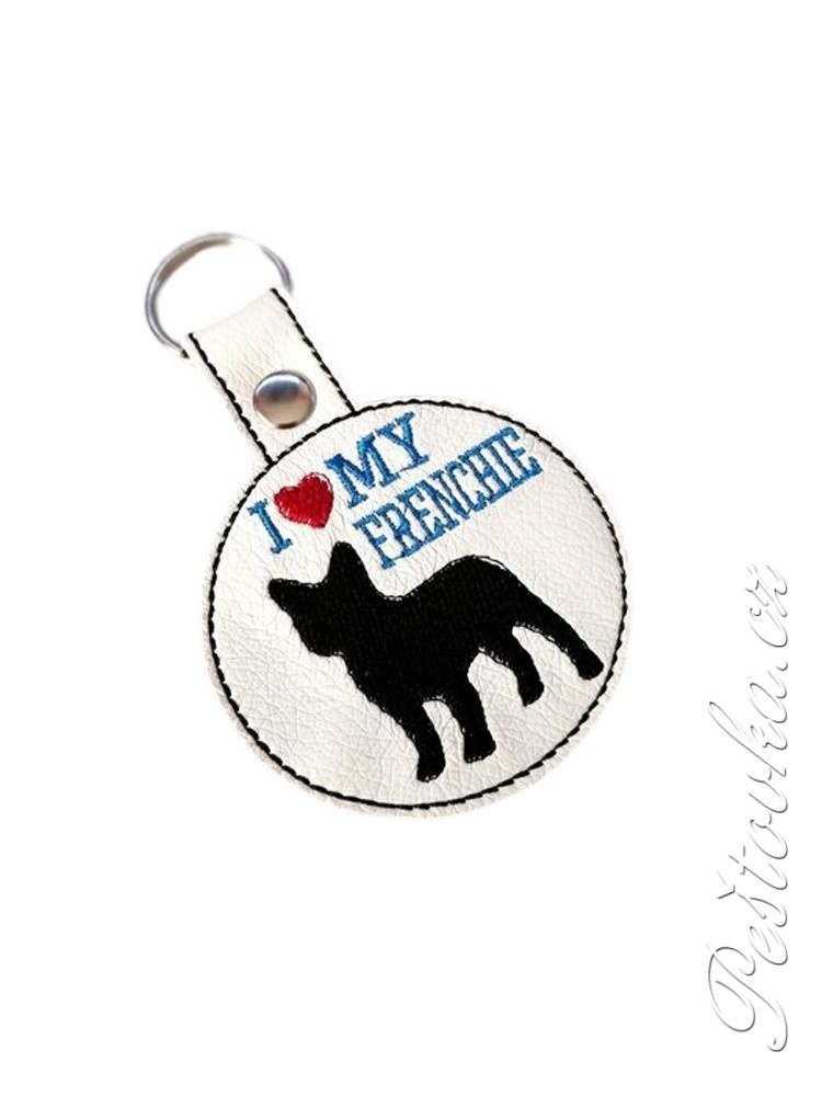 Peštovka - Klíčenka vyšívaná *i love my frenchie*Vyrobíme pro vás do 2 týdnů99 Kč