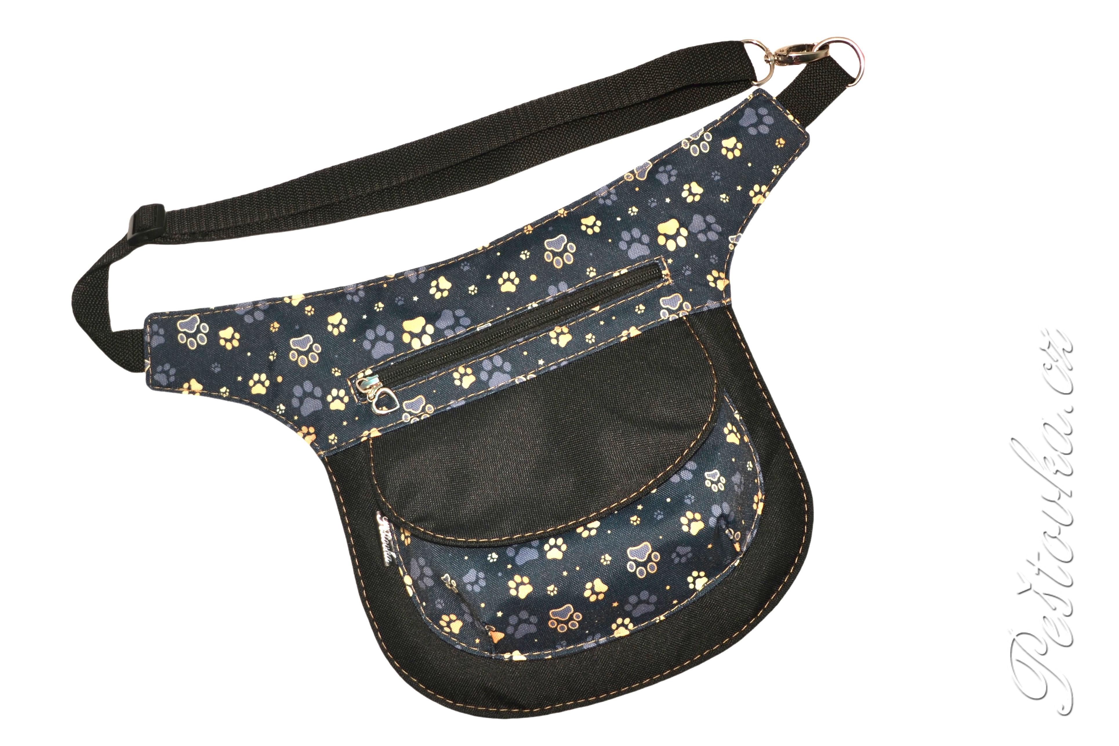 Prostorná kapsička / ledvinka na připnutí kolem pasu. Lze použít i jako prostorný pamlskovník nebo jako příruční kapsu na mobil, když potřebujete mít volné ruce.