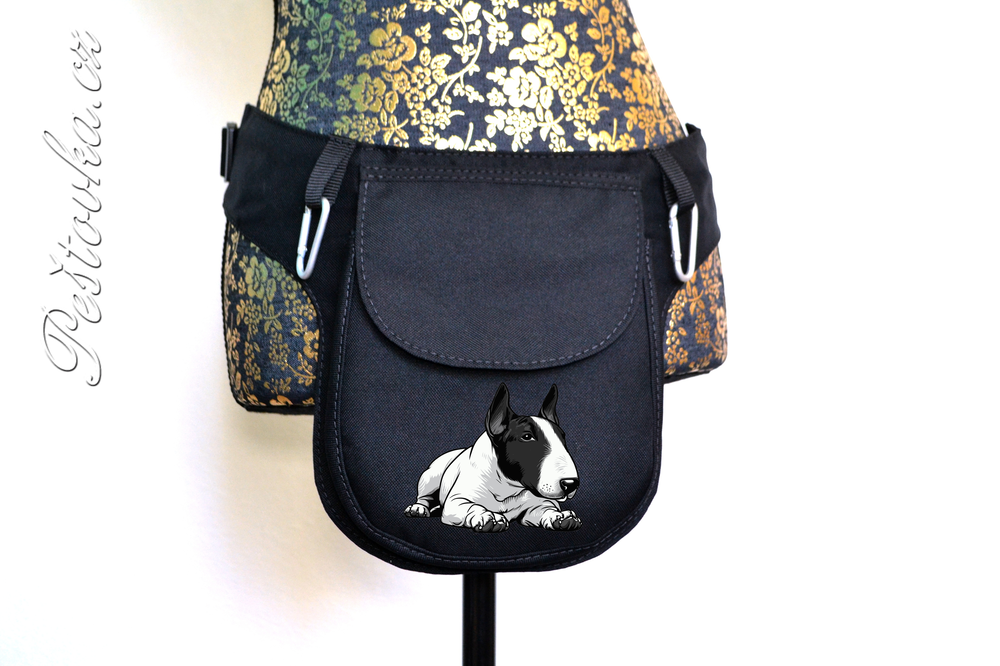 Prostorná kapsička / ledvinka na připnutí kolem pasu. Lze použít i jako prostorný pamlskovník nebo jako příruční kapsu na mobil, když potřebujete mít volné ruce.