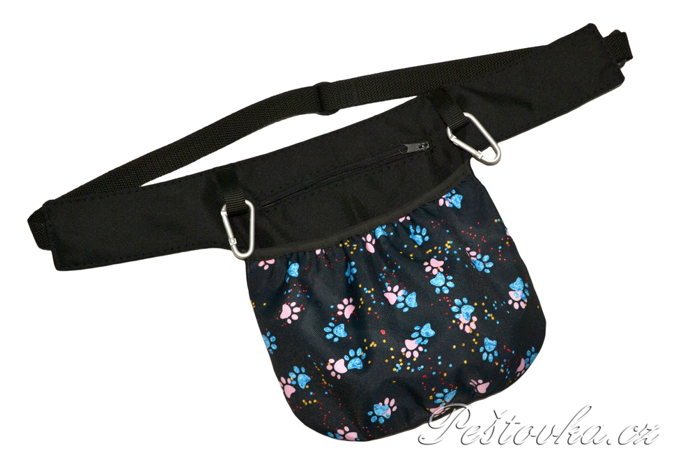 Prostorná kapsička / ledvinka na připnutí kolem pasu. Lze použít i jako prostorný pamlskovník nebo jako příruční kapsu na mobil, když potřebujete mít volné ruce.