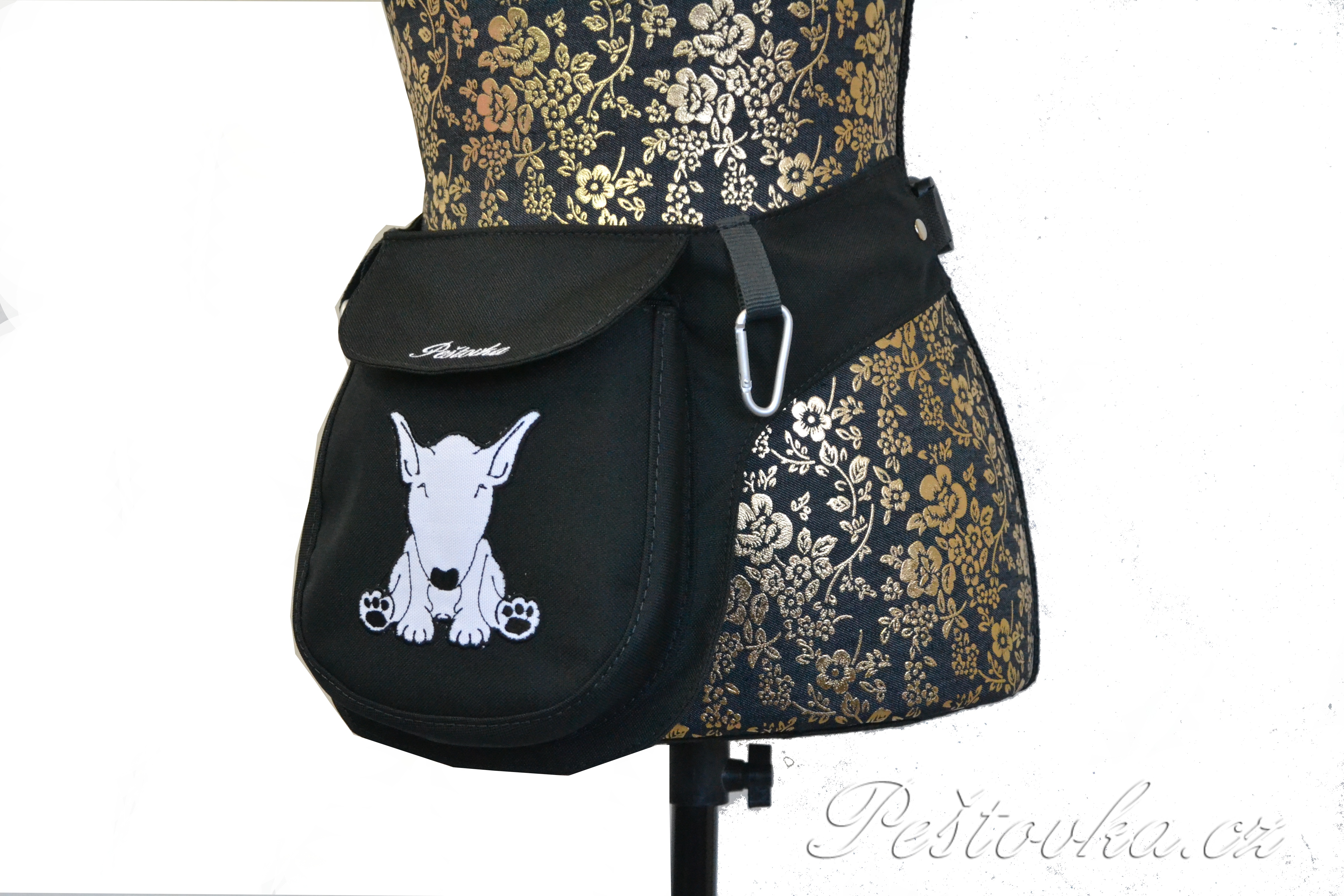 Prostorná kapsička / ledvinka na připnutí kolem pasu. Lze použít i jako prostorný pamlskovník nebo jako příruční kapsu na mobil, když potřebujete mít volné ruce.