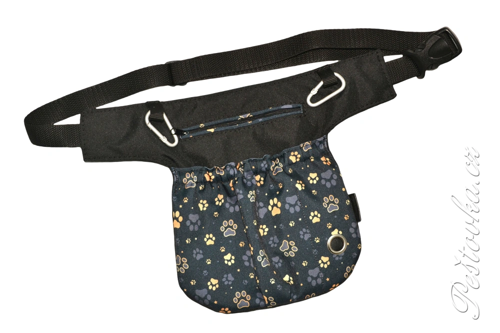 Prostorná kapsička / ledvinka na připnutí kolem pasu. Lze použít i jako prostorný pamlskovník nebo jako příruční kapsu na mobil, když potřebujete mít volné ruce.