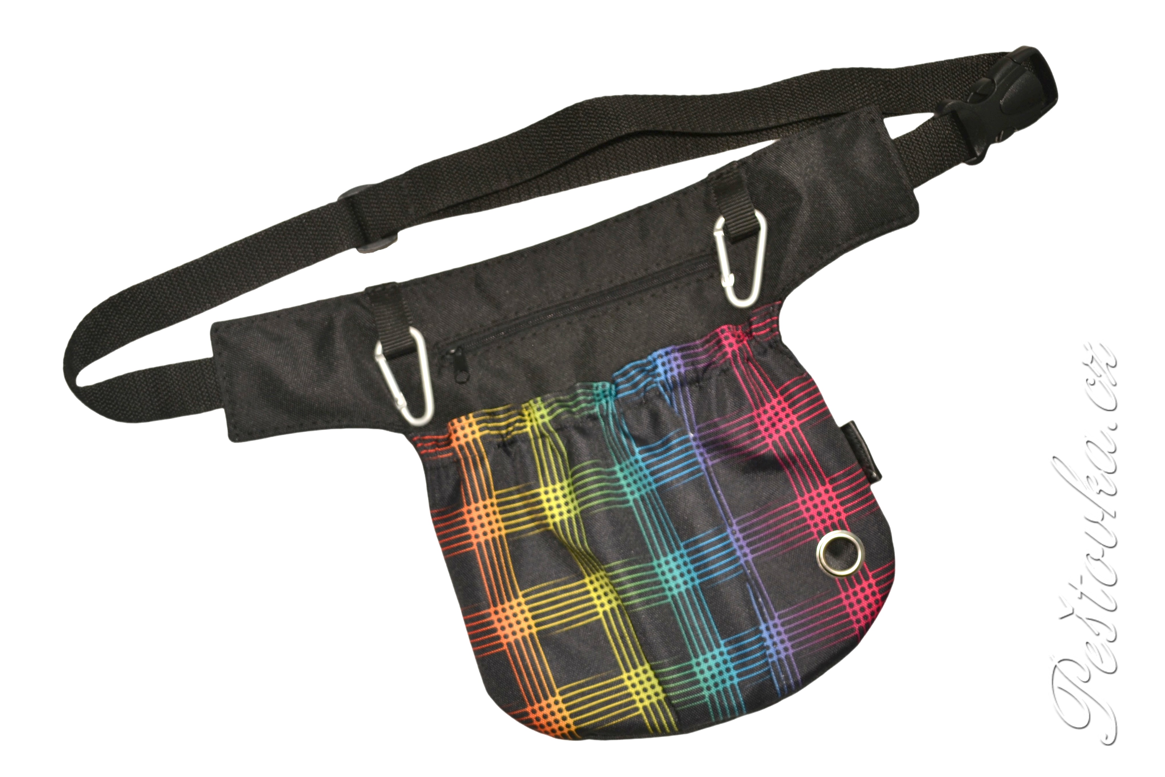 Prostorná kapsička / ledvinka na připnutí kolem pasu. Lze použít i jako prostorný pamlskovník nebo jako příruční kapsu na mobil, když potřebujete mít volné ruce.