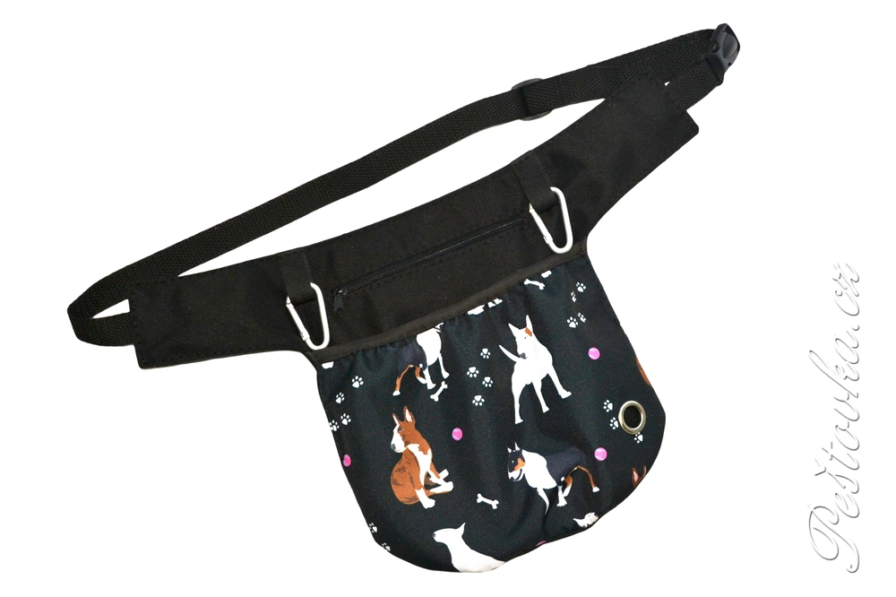 Prostorná kapsička / ledvinka na připnutí kolem pasu. Lze použít i jako prostorný pamlskovník nebo jako příruční kapsu na mobil, když potřebujete mít volné ruce.