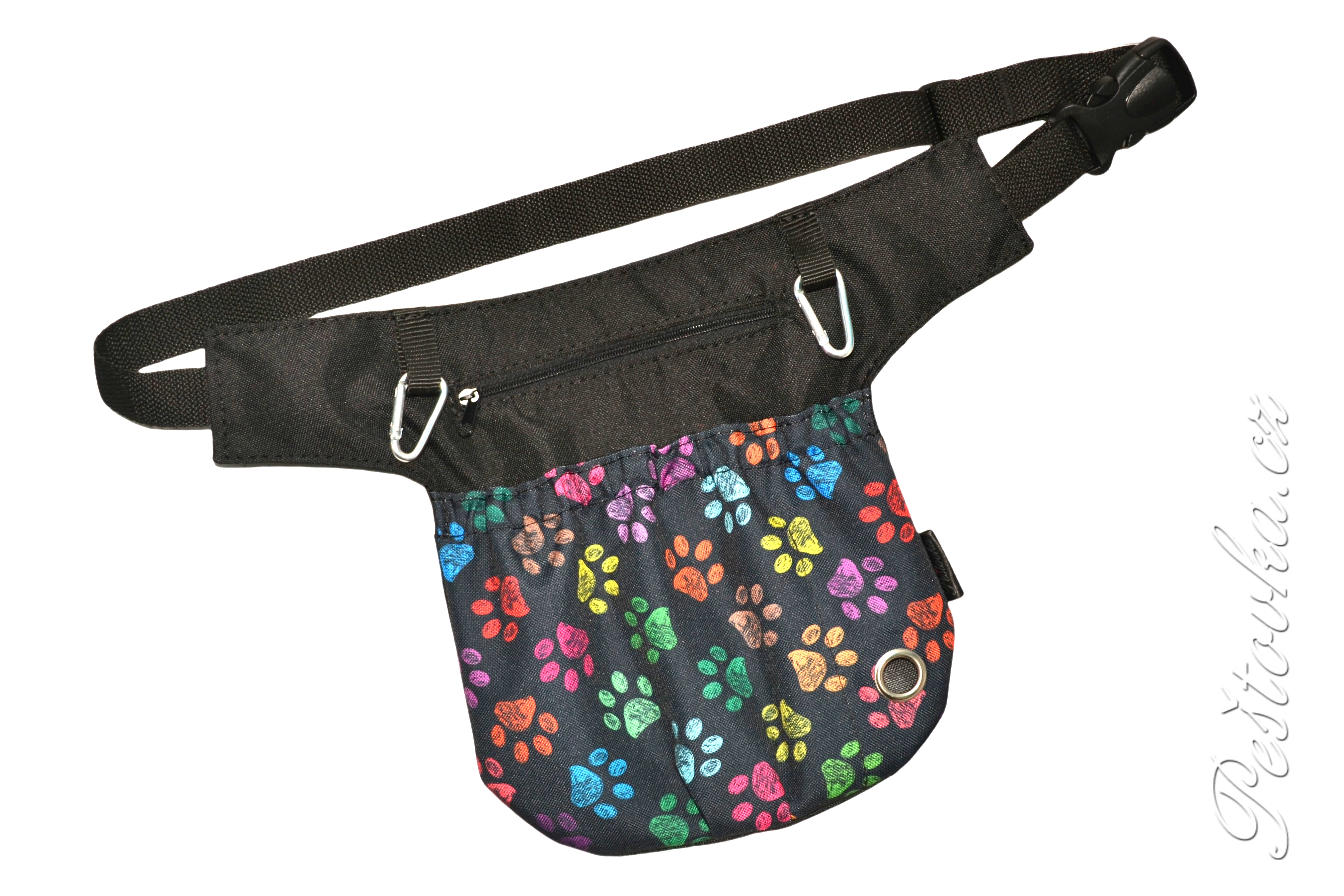 Prostorná kapsička / ledvinka na připnutí kolem pasu. Lze použít i jako prostorný pamlskovník nebo jako příruční kapsu na mobil, když potřebujete mít volné ruce.