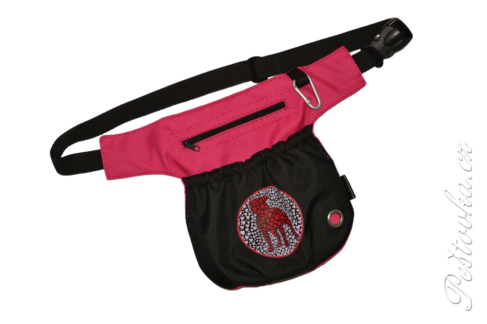 Prostorná kapsička / ledvinka na připnutí kolem pasu. Lze použít i jako prostorný pamlskovník nebo jako příruční kapsu na mobil, když potřebujete mít volné ruce.