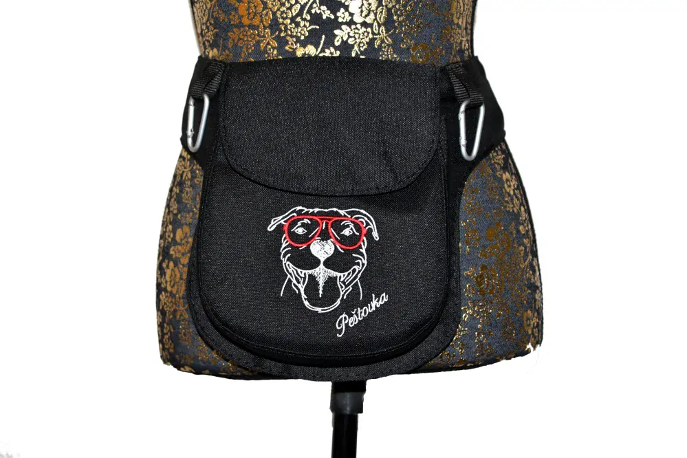 Prostorná kapsička / ledvinka na připnutí kolem pasu. Lze použít i jako prostorný pamlskovník nebo jako příruční kapsu na mobil, když potřebujete mít volné ruce.