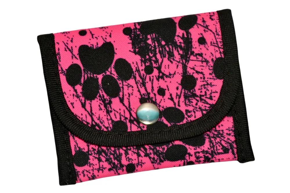 Tato malá peněženka má jednu zipovou kapsičku na drobné mince, a jeden prostor za ní, kam šupnete složené bankovky a platebníkartu. Zapínání na druk.