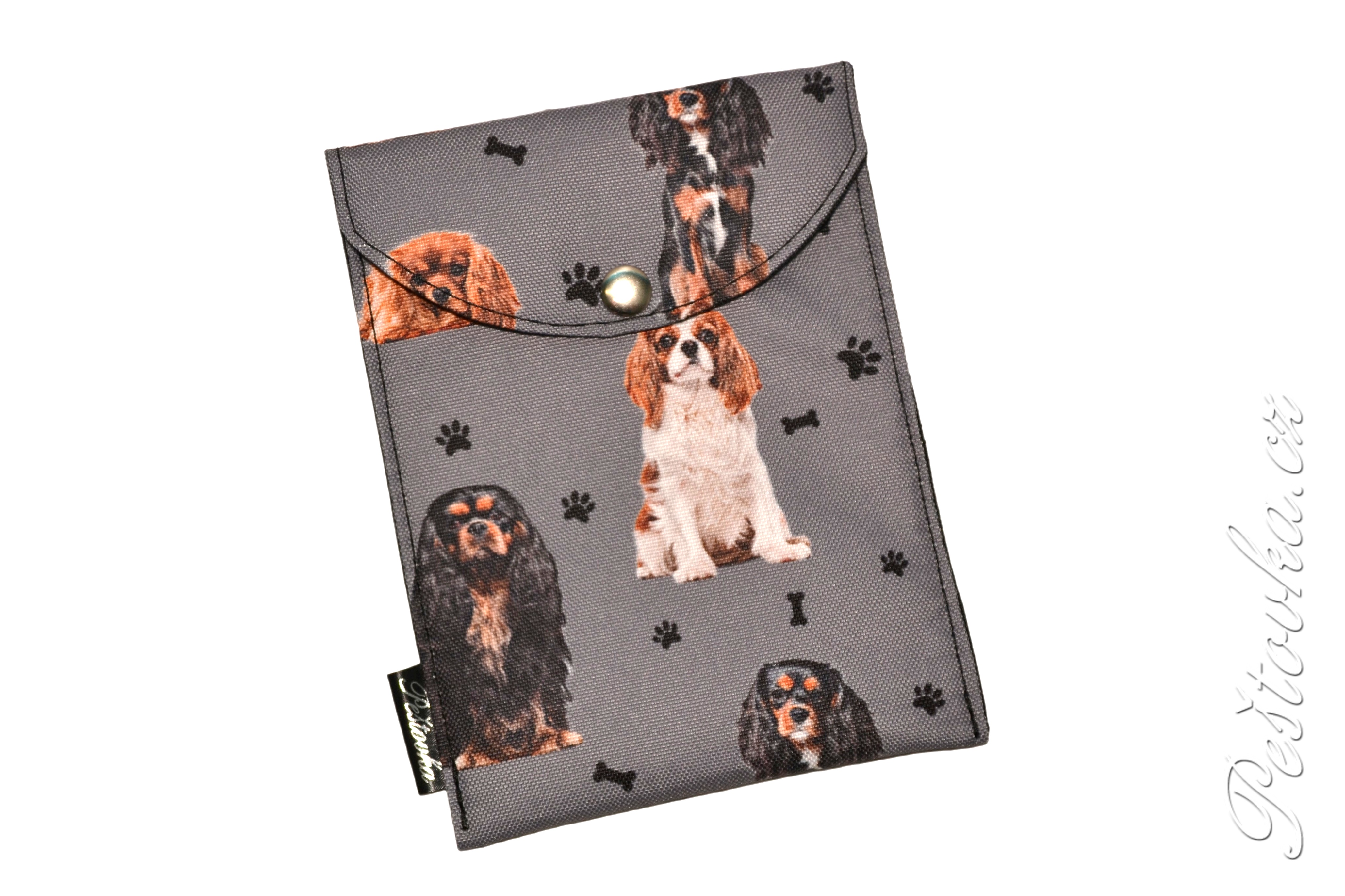 Praktický obal na očkovací průkaz, ušitý jako kapsička s zavíráním na klopu s drukem!