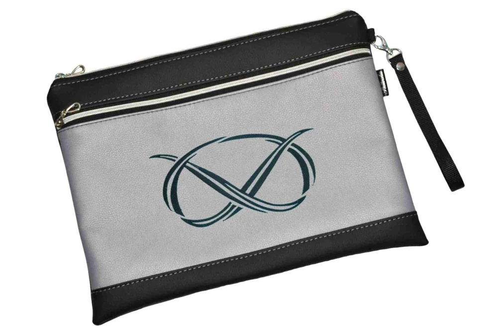 Na předním díle je ozdobná výšivka s konkrétním motivem, která dává deskám osobitý vzhled, bez nutnosti vlastního loga.