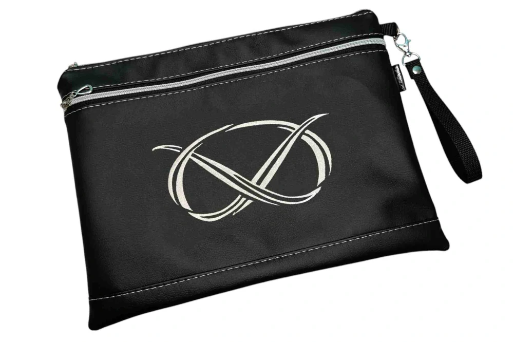 Koženkové desky na PP / obal na průkaz původu s ozdobnou výšivkou na předním díle. Praktické zapínání na zip, kapsa na drobnosti a odepínatelné poutko. Ideální na výstavy i bezpečné uložení psích dokumentů. celý popis