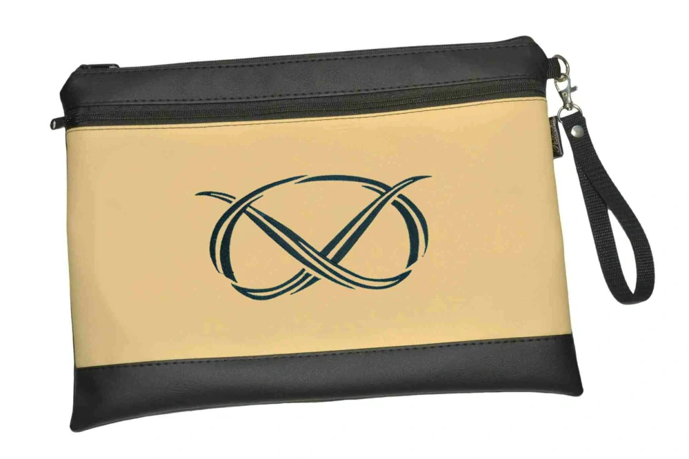 Na předním díle je ozdobná výšivka s konkrétním motivem, která dává deskám osobitý vzhled, bez nutnosti vlastního loga.