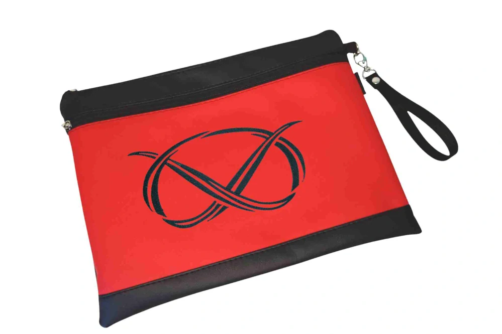 Koženkové desky na PP / obal na průkaz původu s ozdobnou výšivkou na předním díle. Praktické zapínání na zip, kapsa na drobnosti a odepínatelné poutko. Ideální na výstavy i bezpečné uložení psích dokumentů. celý popis