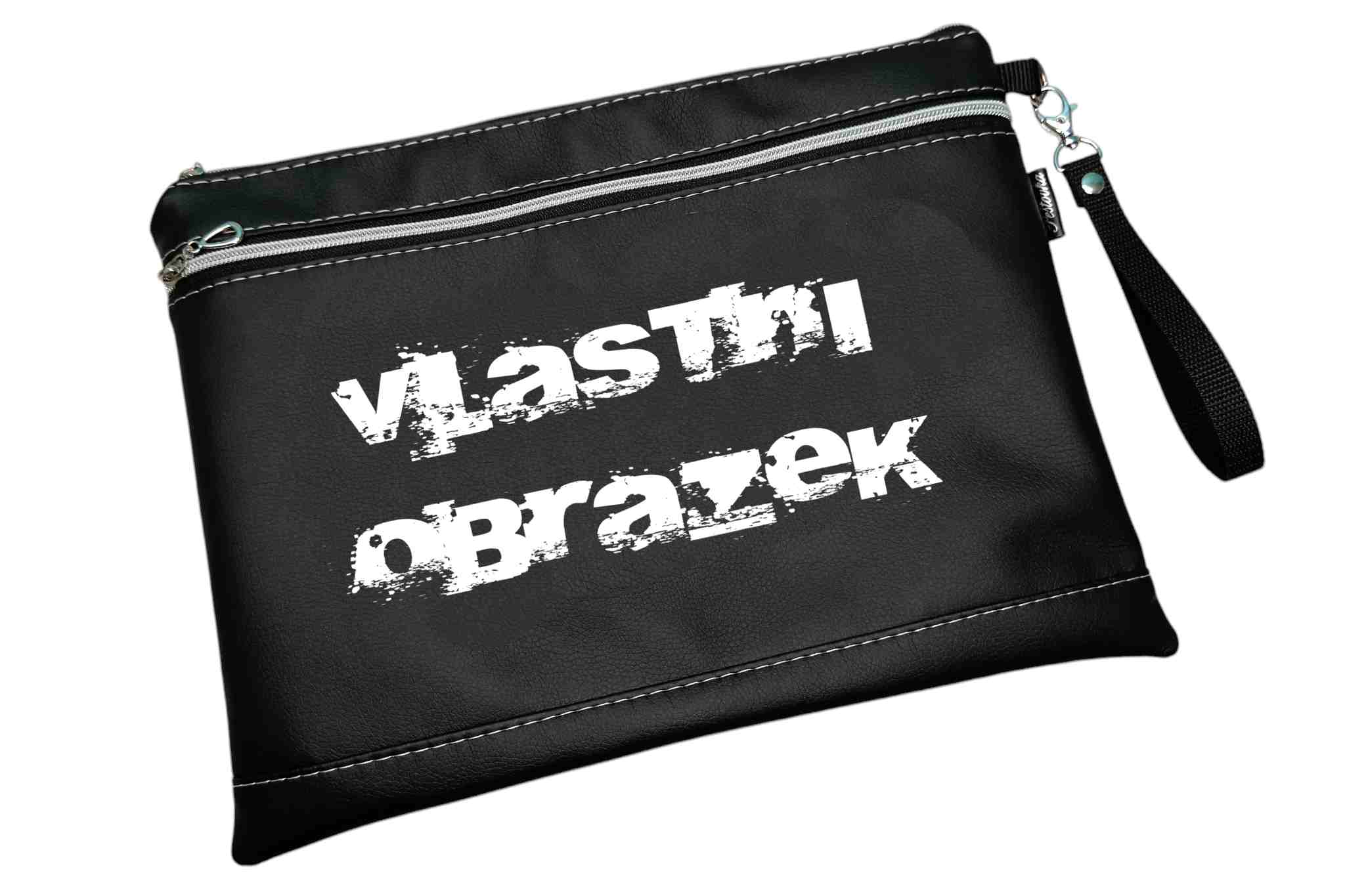 Praktičnost na prvním místě – zapínání na zip, odepínatelné poutko na ruku, venkovní kapsa přes celou šířku. Uvnitř na přání i kapsička navíc.