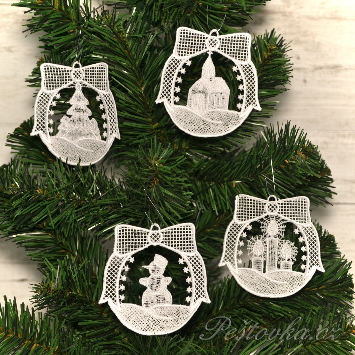 Peštovka - sada 4 vánočních ozdob *bílé*Vyrobíme pro vás do 2 týdnů320 Kč