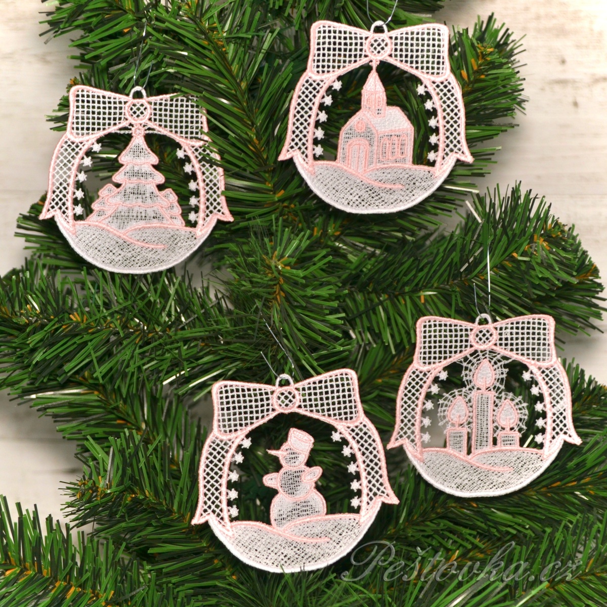 Peštovka - sada 4 ozdob na stromeček *bílo-lososové*
