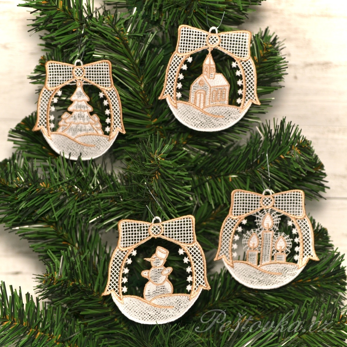 Nádherná sada 4 kusů vyšívaných vánočních ozdob, nad kterými se vám zatají dech.