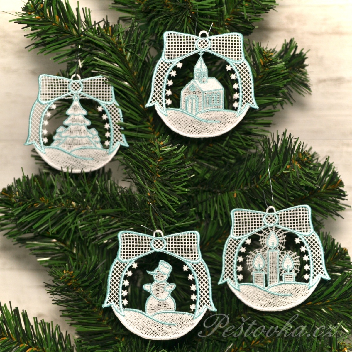 - Peštovka - sada 4 vánočních ozdob *bílo-mentolové*