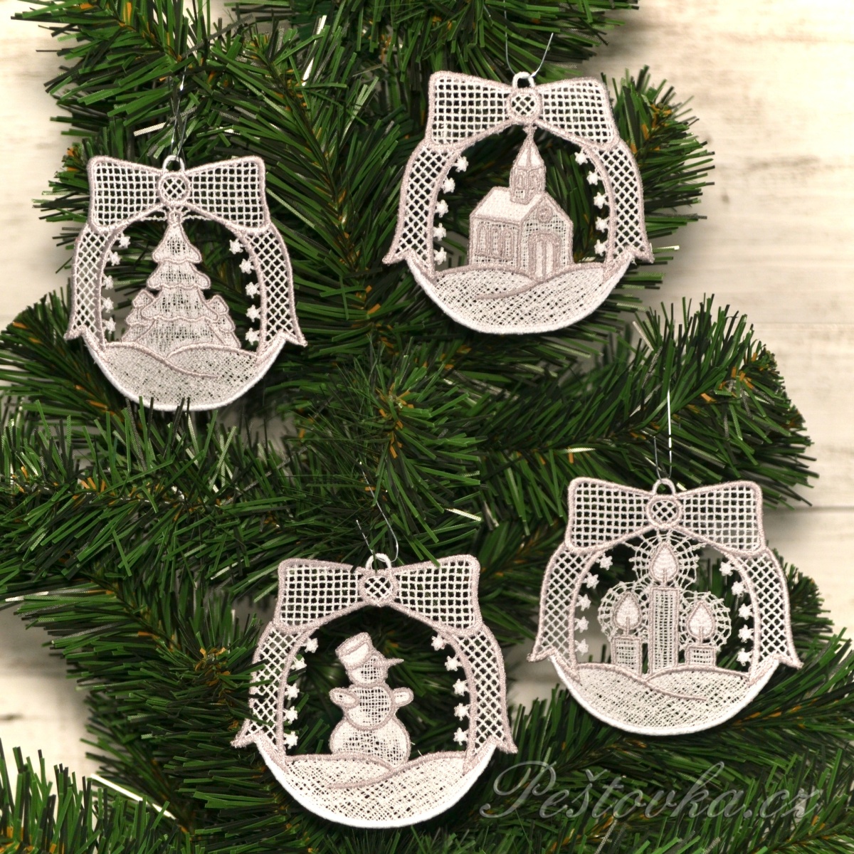Peštovka - sada 4 ozdob na stromeček *bílo-stříbrné*Vyrobíme pro vás do 2 týdnů320 Kč