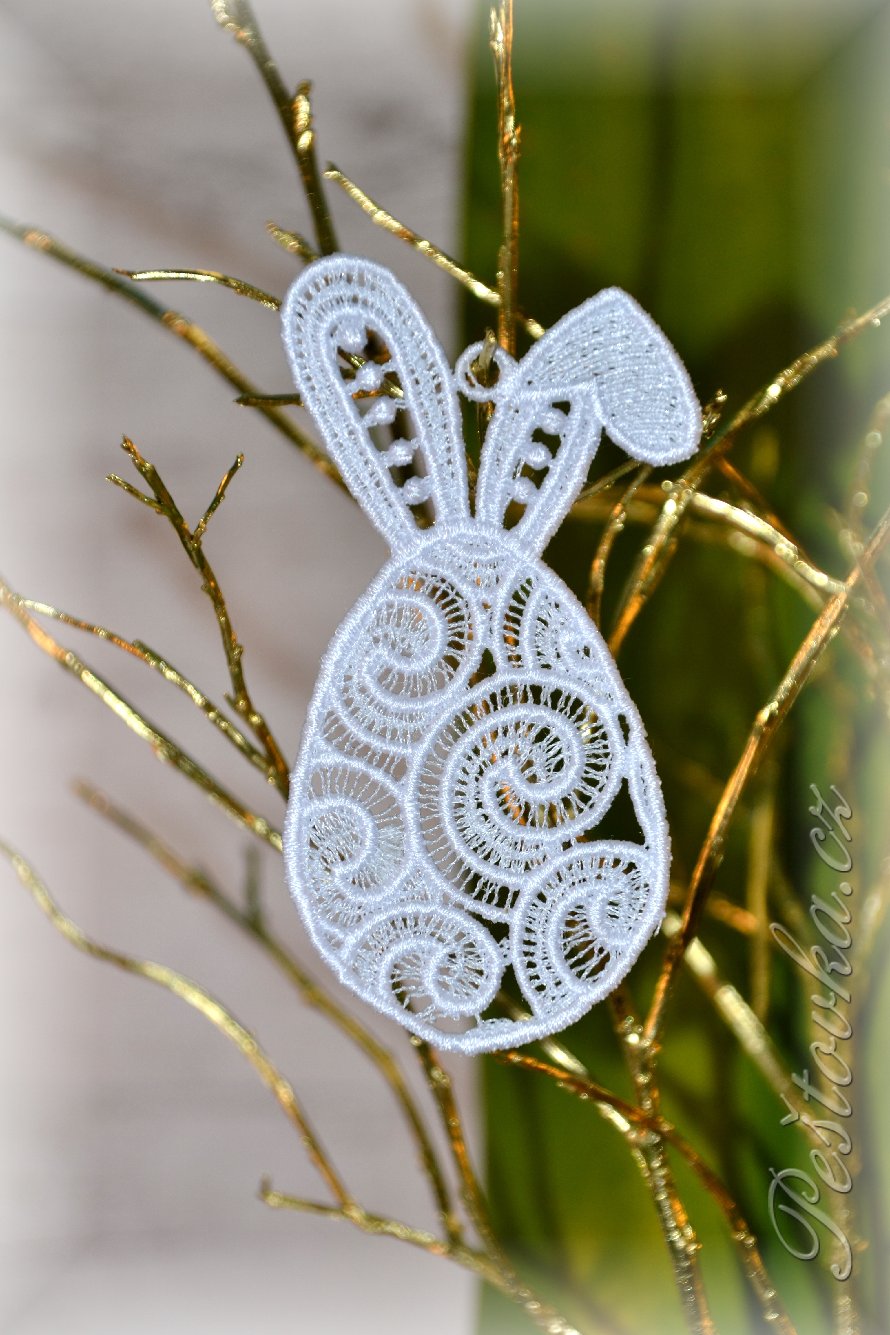 Nádherná jemná vyšívaná velikonoční dekorace bude jistě krásnou a neokoukanou ozdobou vaší velikonoční či jarní domácnosti.