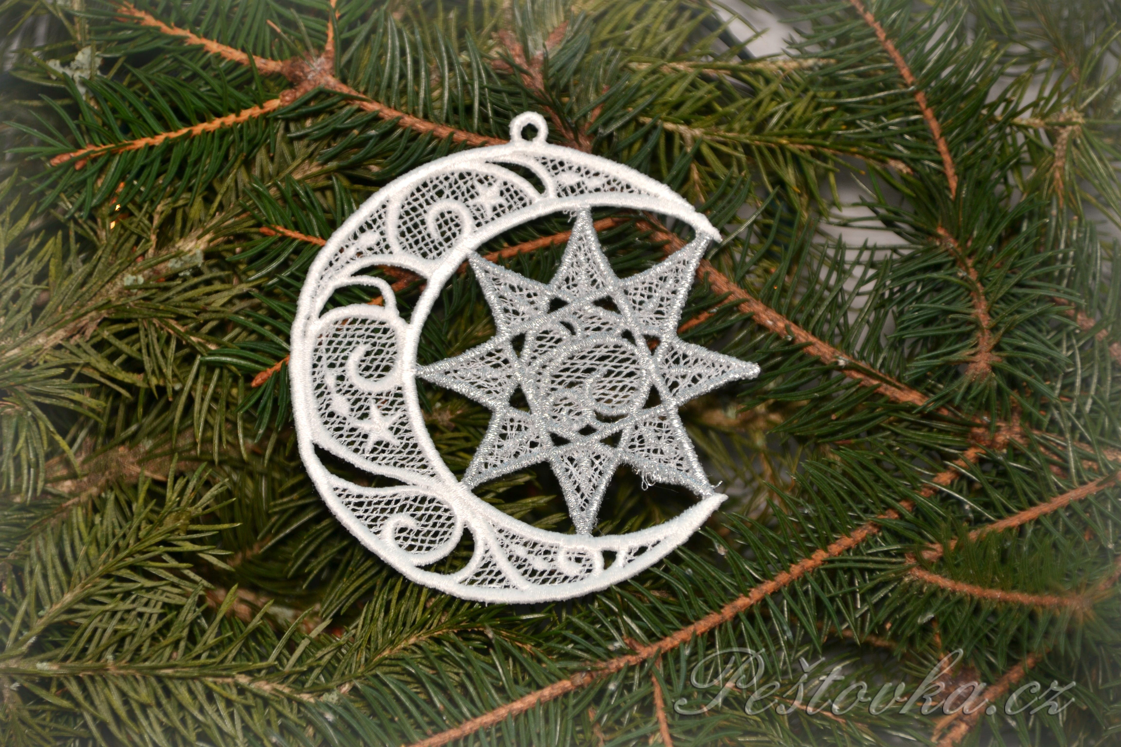 Nádherná jemná vyšívaná vánoční ozdoba bude jist krásnou a netradiční ozdobou vaší vánoční výzdoby.