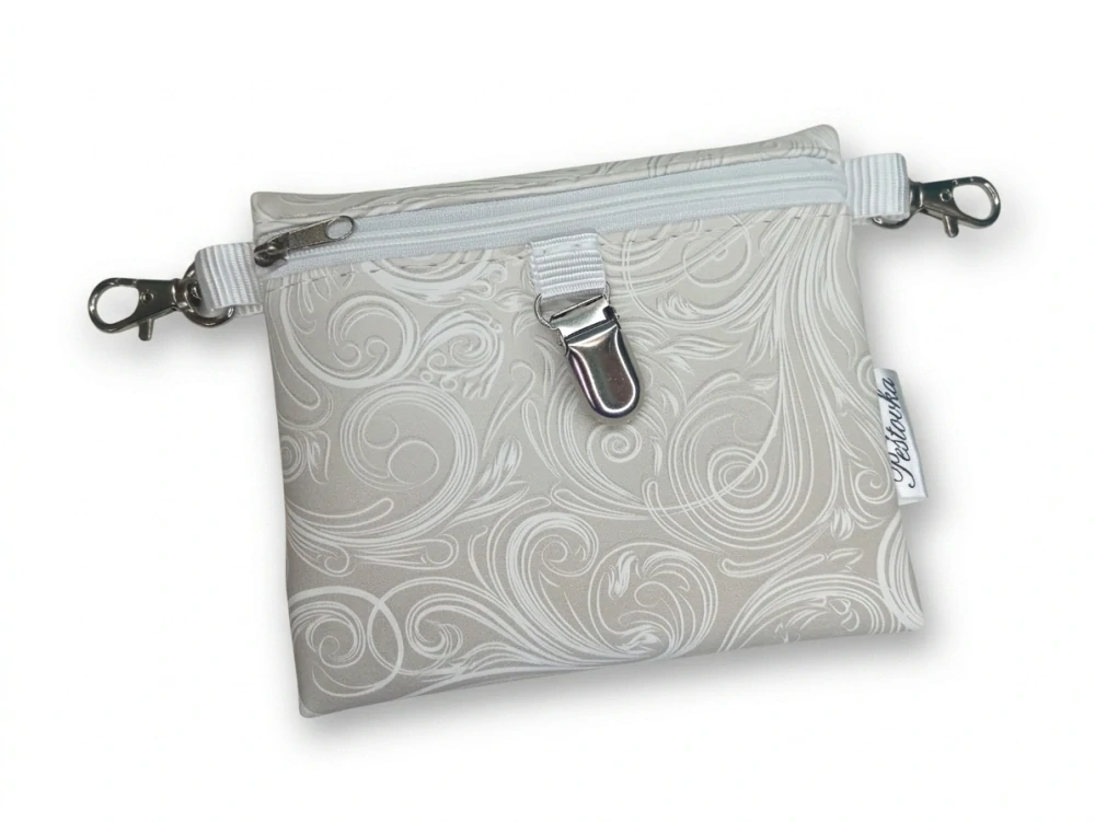 Peštovka - Výstavní pamlskovník 2v1 se zipem a klipem na výstavní číslo *ornamenty na béžové*