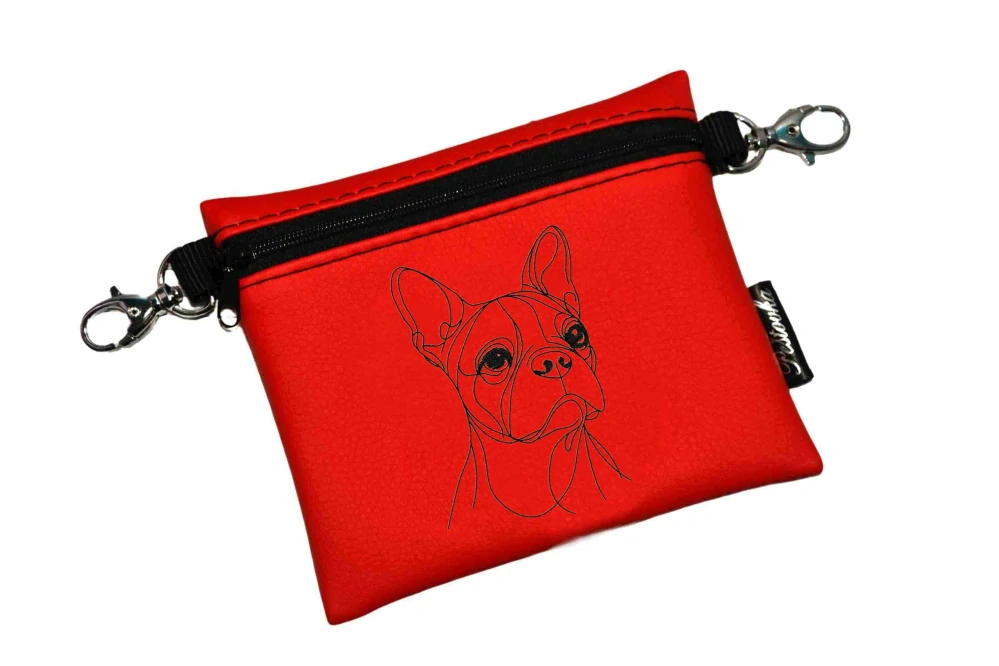 Jednokomorový pamlskovník je ručně šitý z kvalitní zahraniční koženky, která působí luxusně, dobře drží tvar a krásně doplní váš výstavní outfit. Voděodolná podšívka uvnitř si poradí i s drobky nebo mastnějšími pamlsky – žádné stresy, žádné kompromisy.