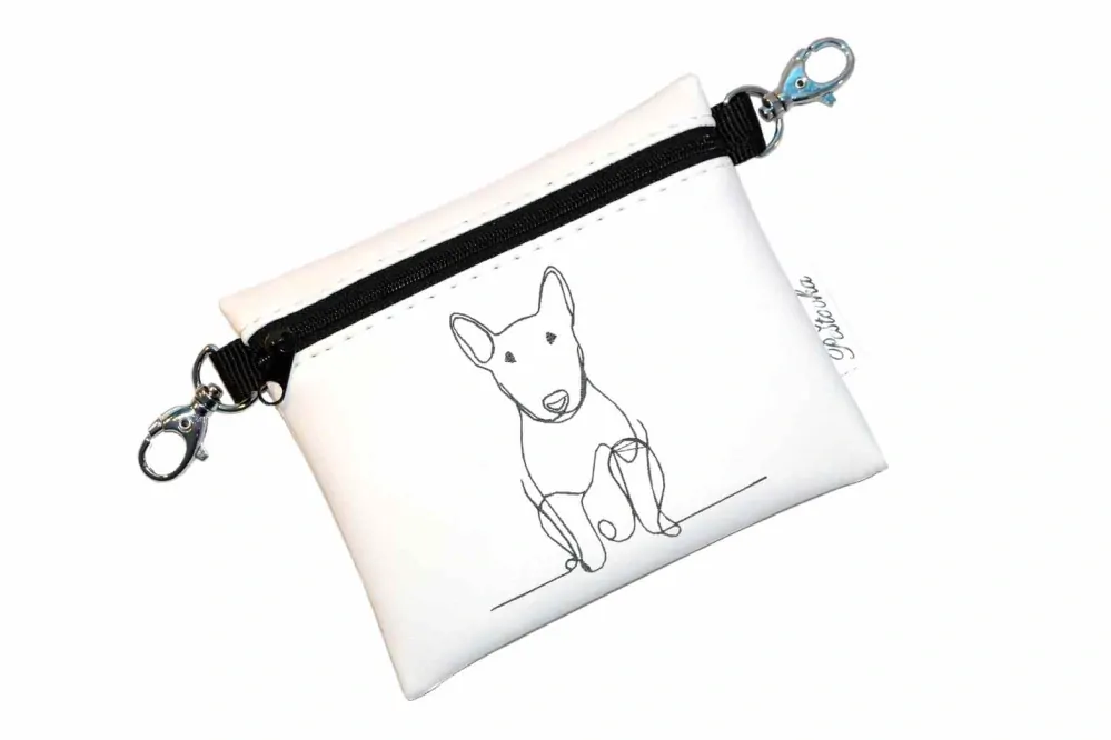 Elegantní pamlskovník se zipem, z krásné zahraniční koženky, je vhodný především jako doplněk při vystavování pejsků na výstavách.