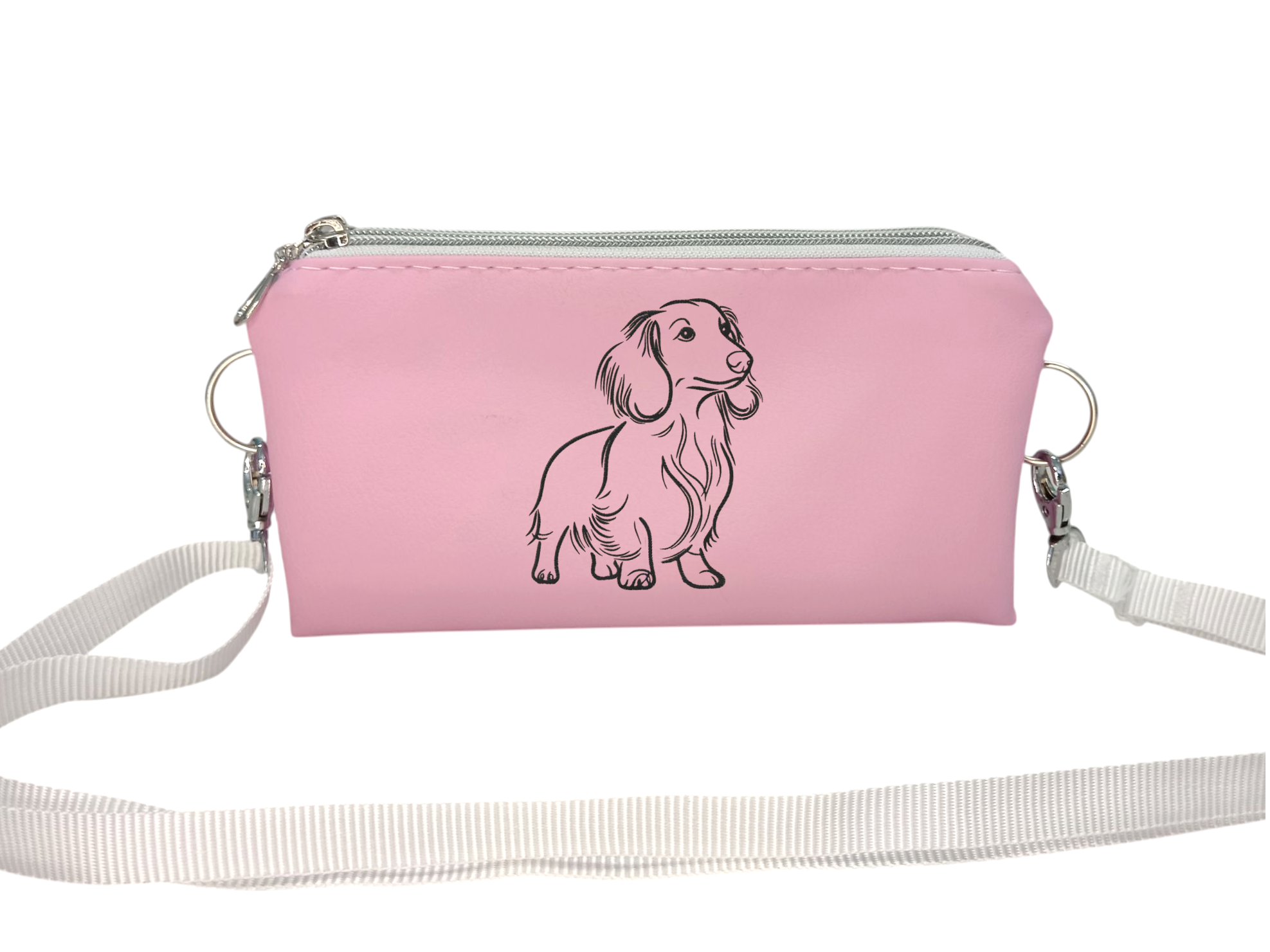 Stylový dvoukomorový pamlskovník z luxusní zahraniční koženky je skvělým doplňkem nejen na výstavy psů, ale i na každodenní procházky. Jedná se o dvě spojené kapsy se samostatnými zipy – do jedné snadno uložíte pamlsky, do druhé telefon, klíče nebo další nezbytnosti.