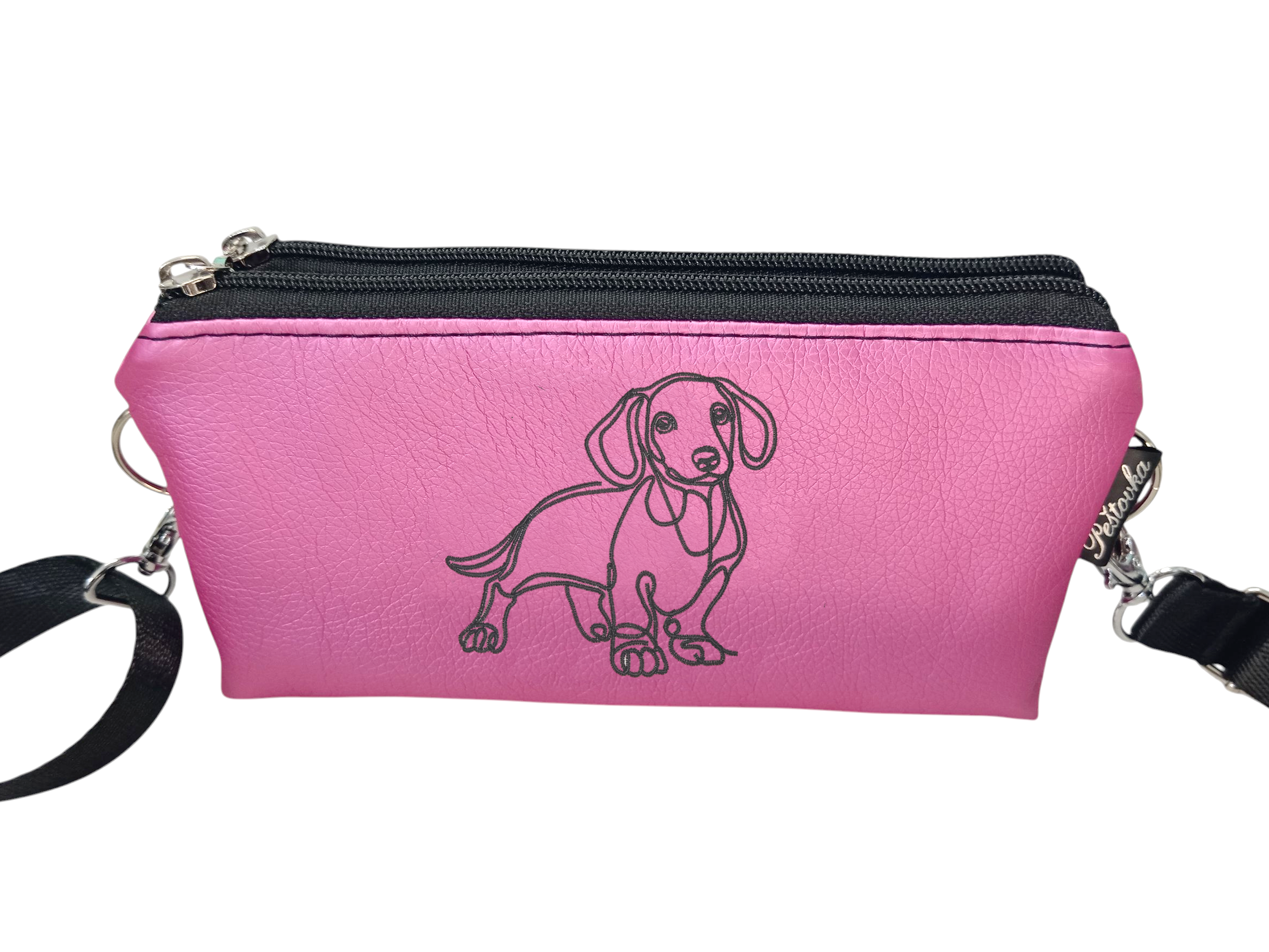 Stylový dvoukomorový pamlskovník z luxusní zahraniční koženky je skvělým doplňkem nejen na výstavy psů, ale i na každodenní procházky. Jedná se o dvě spojené kapsy se samostatnými zipy – do jedné snadno uložíte pamlsky, do druhé telefon, klíče nebo další nezbytnosti.