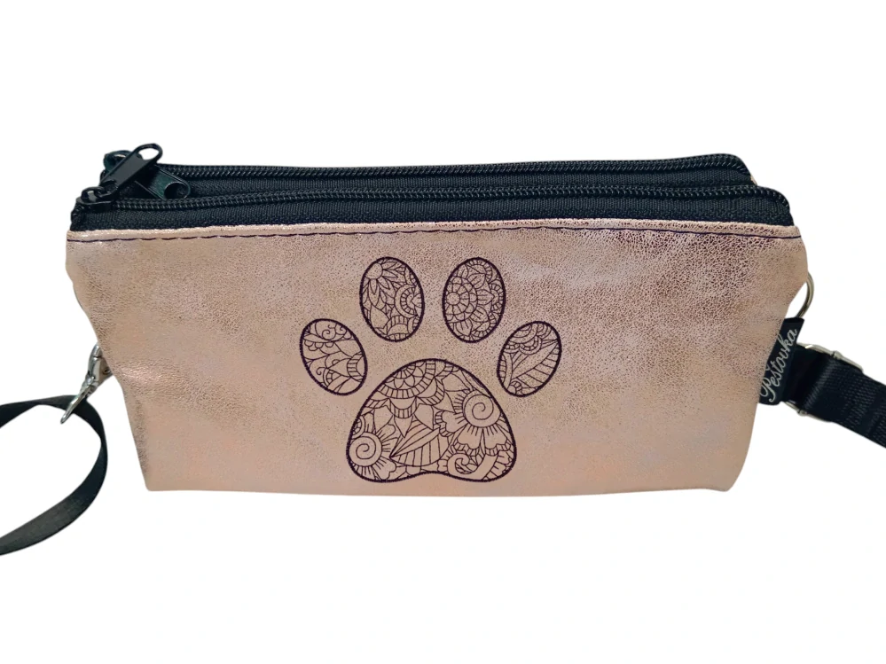 Stylový dvoukomorový pamlskovník z luxusní zahraniční koženky je skvělým doplňkem nejen na výstavy psů, ale i na každodenní procházky. Jedná se o dvě spojené kapsy se samostatnými zipy – do jedné snadno uložíte pamlsky, do druhé telefon, klíče nebo další nezbytnosti.