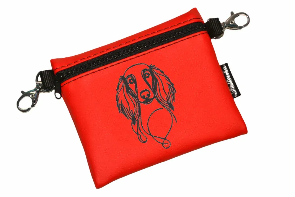 Elegantní pamlskovník se zipem, z krásné zahraniční koženky, je vhodný především jako doplněk při vystavování pejsků na výstavách.
