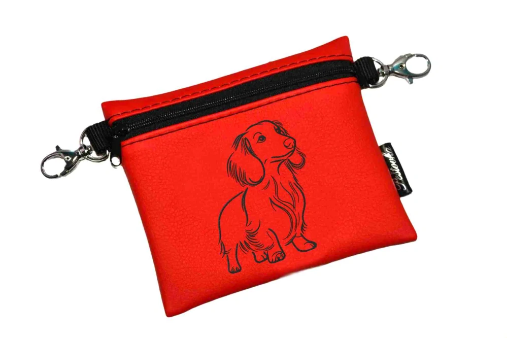 Elegantní pamlskovník se zipem, z krásné zahraniční koženky, je vhodný především jako doplněk při vystavování pejsků na výstavách.