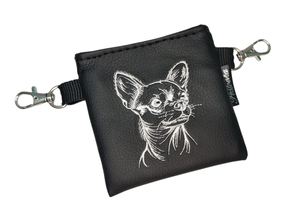 Vnitřek je ušitý z voděodolné polyesterové látky s povrchovou úpravou, takže se nemusíte bát drobků ani mastnějších pamlsků. Každý kus zdobí výšivka, díky které je pamlskovník nejen praktickou pomůckou, ale i stylovým doplňkem.