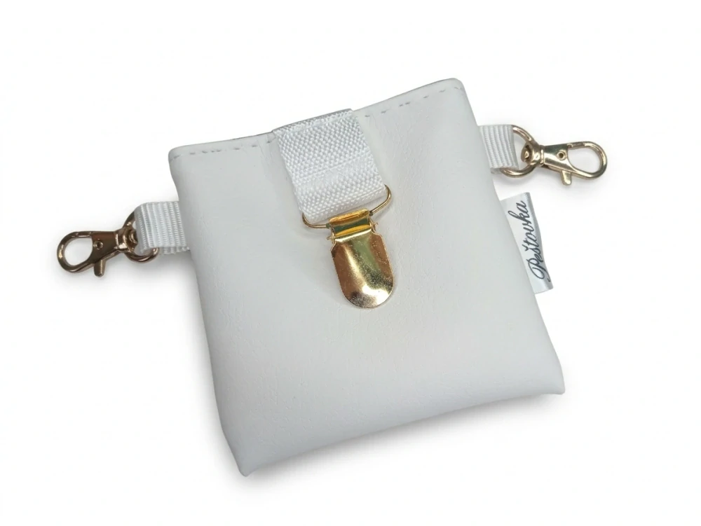 Pamlskovník je ručně šitý z kvalitní zahraniční koženky, která drží tvar, působí elegantně a skvěle doplní váš výstavní outfit. Magnetické zapínání umožňuje rychlý přístup k pamlskům bez zbytečného zdržování – ideální řešení do výstavního kruhu i na tréninky.