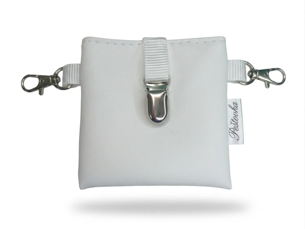 Pamlskovník je ručně šitý z kvalitní zahraniční koženky, která drží tvar, působí elegantně a skvěle doplní váš výstavní outfit. Magnetické zapínání umožňuje rychlý přístup k pamlskům bez zbytečného zdržování – ideální řešení do výstavního kruhu i na tréninky.