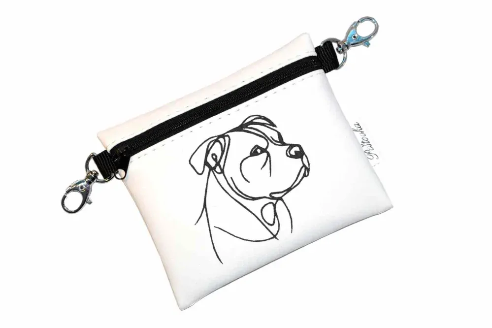 Elegantní pamlskovník se zipem, z krásné zahraniční koženky, je vhodný především jako doplněk při vystavování pejsků na výstavách.
