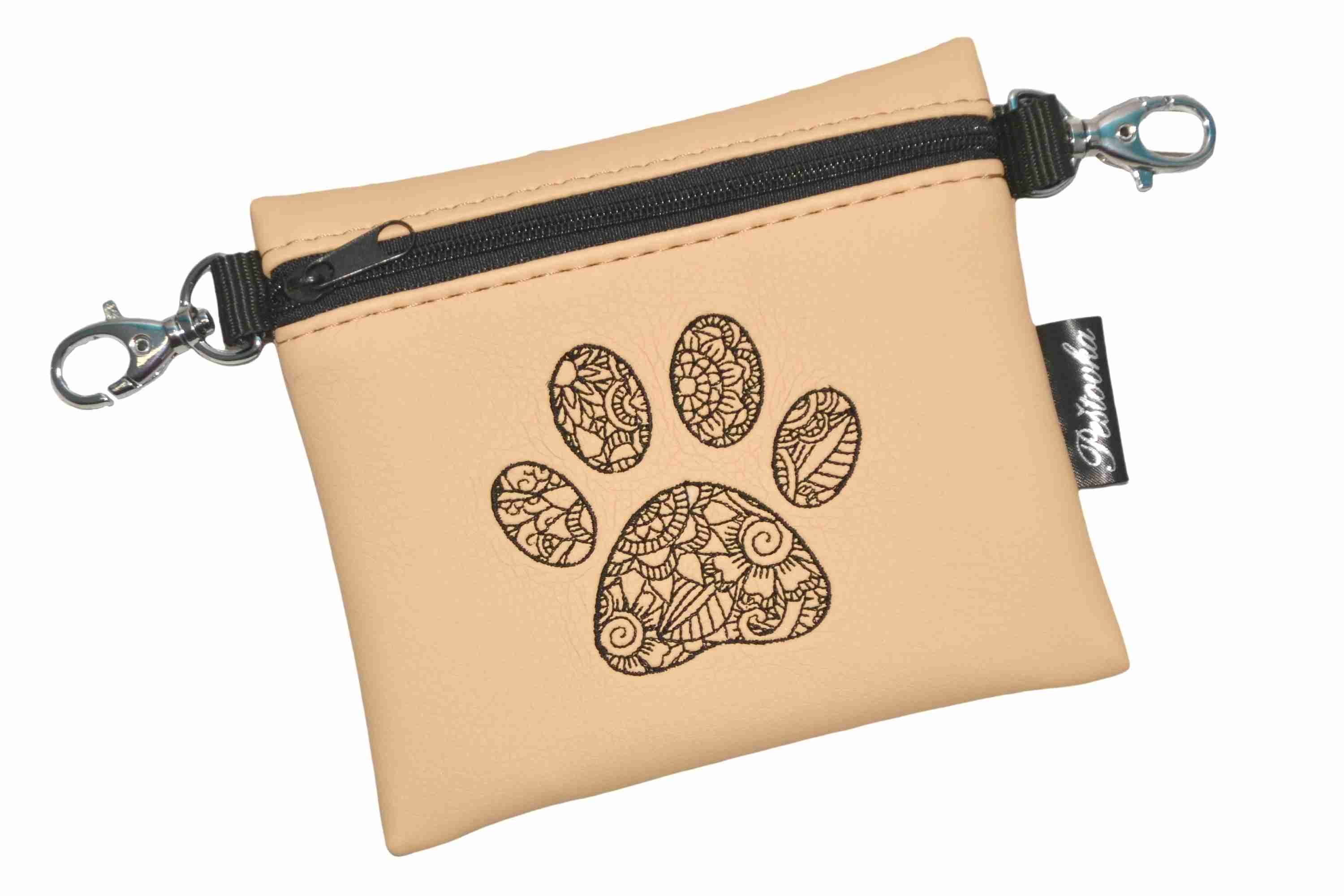 Elegantní pamlskovník se zipem, z krásné zahraniční koženky, je vhodný především jako doplněk při vystavování pejsků na výstavách.
